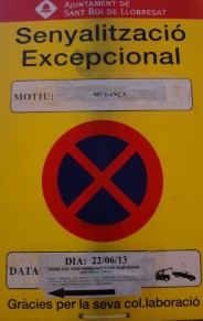 Los permisos de mudanzas en Sant Boi de Llobregat, dan derecho a la reserva de los estacionamientos a la empresa de mudanzas en la fecha y horas indicadas mediante señalización de prohición de aparcamiento para los vecinos y turismos de la zona.